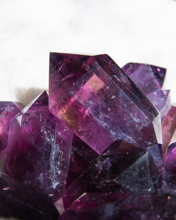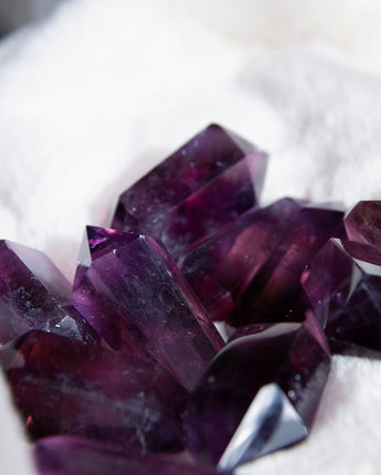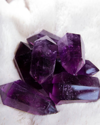 Diese Doppelspitzen haben einen für Amethyst außergewöhnlich dunklen Violett-Ton und sind extrem klar (durchsichtig) mit wunderschönen Einschlüssen.